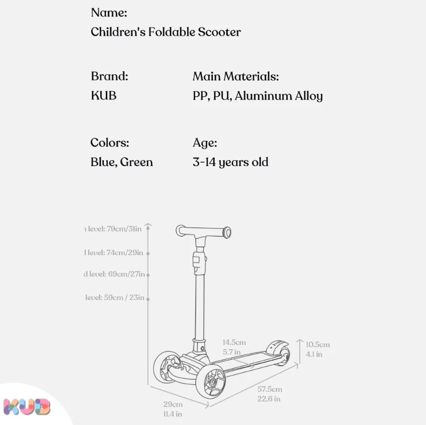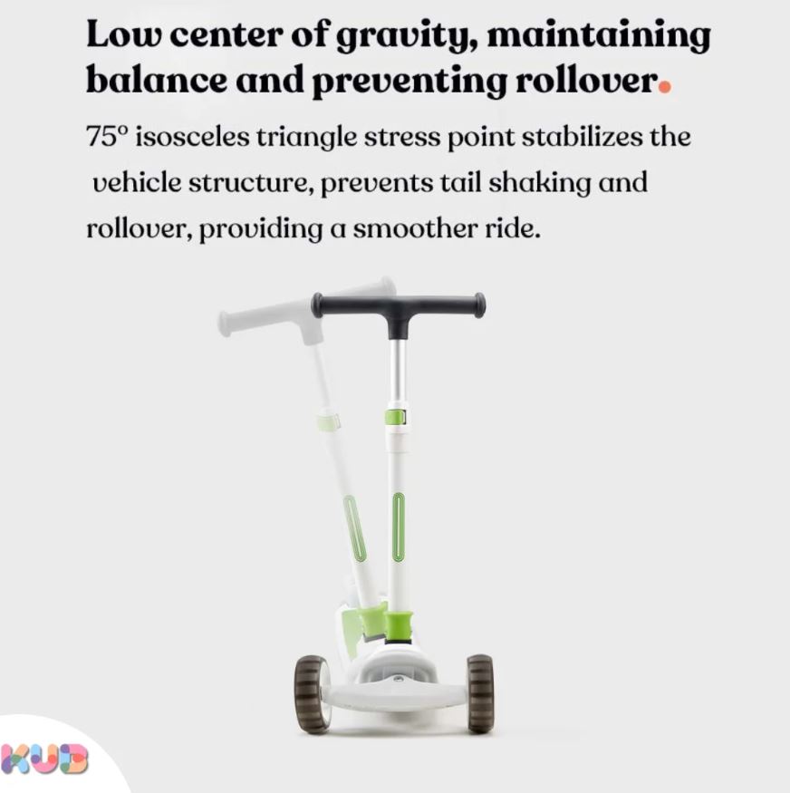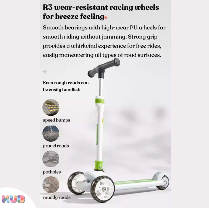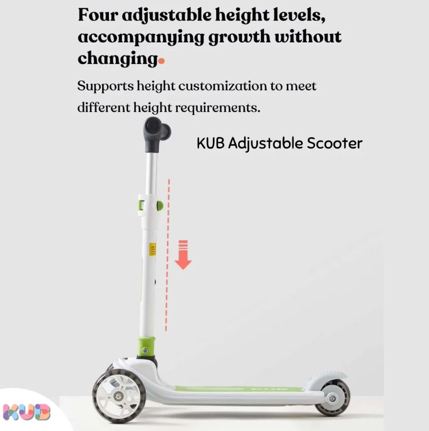 Customizable Riding Experience: With the KUB Adjustable Scooter, adaptability is key. You can effortlessly adjust the height of the handlebars to suit your little one’s stature, ensuring a comfortable and ergonomic riding posture. This not only enhances their riding experience but also fosters healthy development.