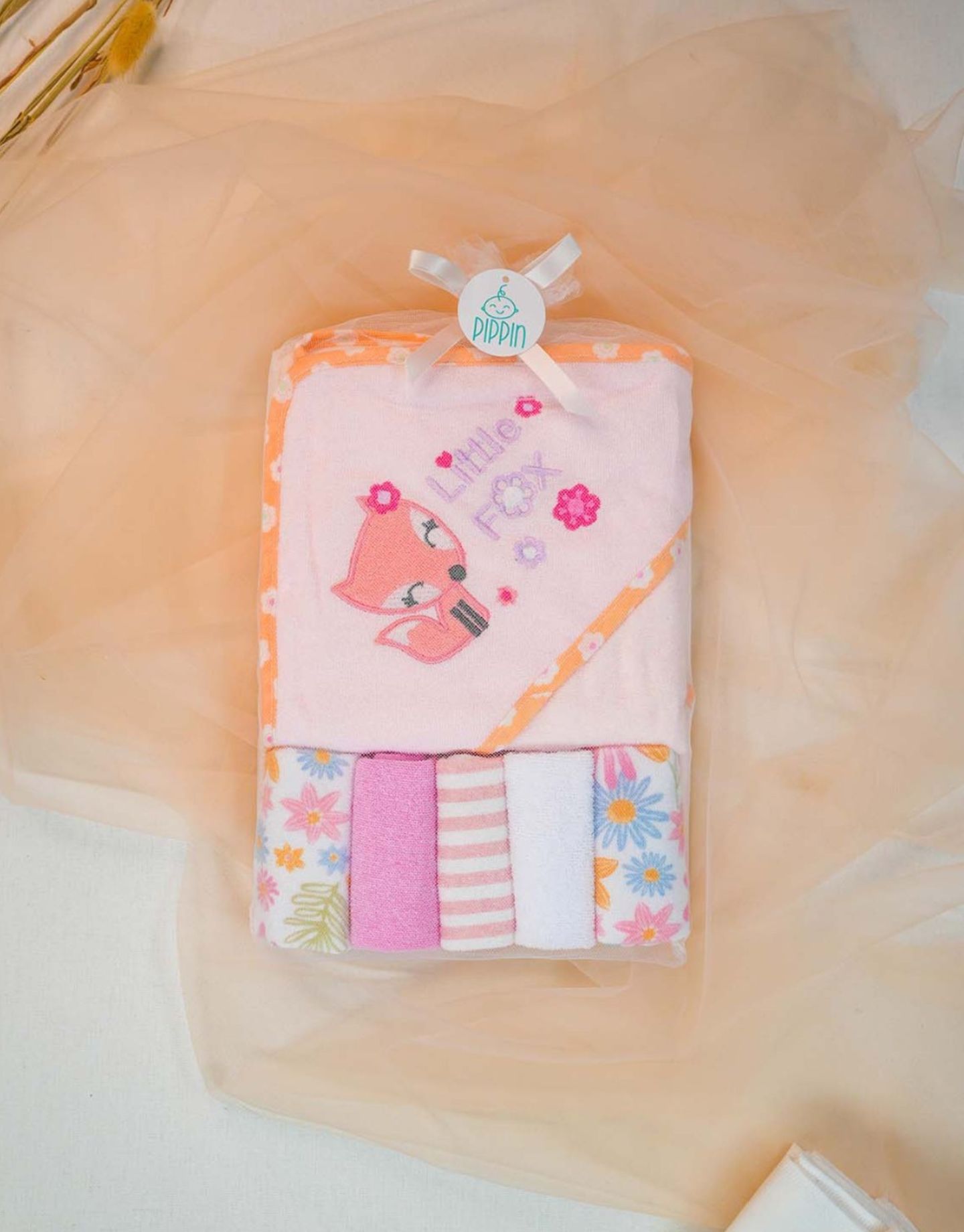 The Baby Bubbles Hooded Towel – Peach Fox is a soft, absorbent towel designed to keep your baby warm and snug after bath time. Made from gentle, baby-safe materials, it features a cute peach fox design and a cozy hood for extra warmth. Perfect for newborns and toddlers, this towel makes bath time fun, comfortable, and irresistibly adorable.