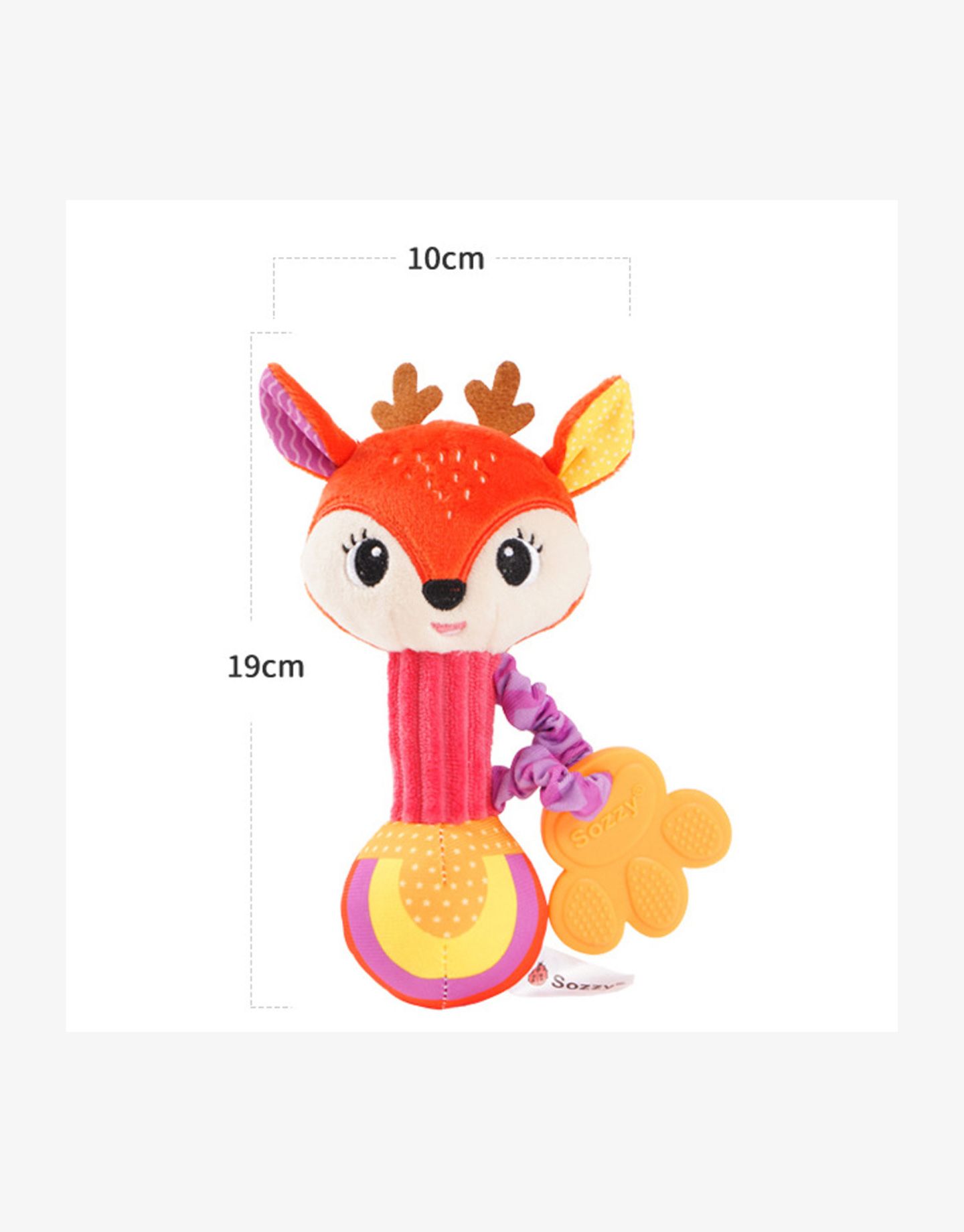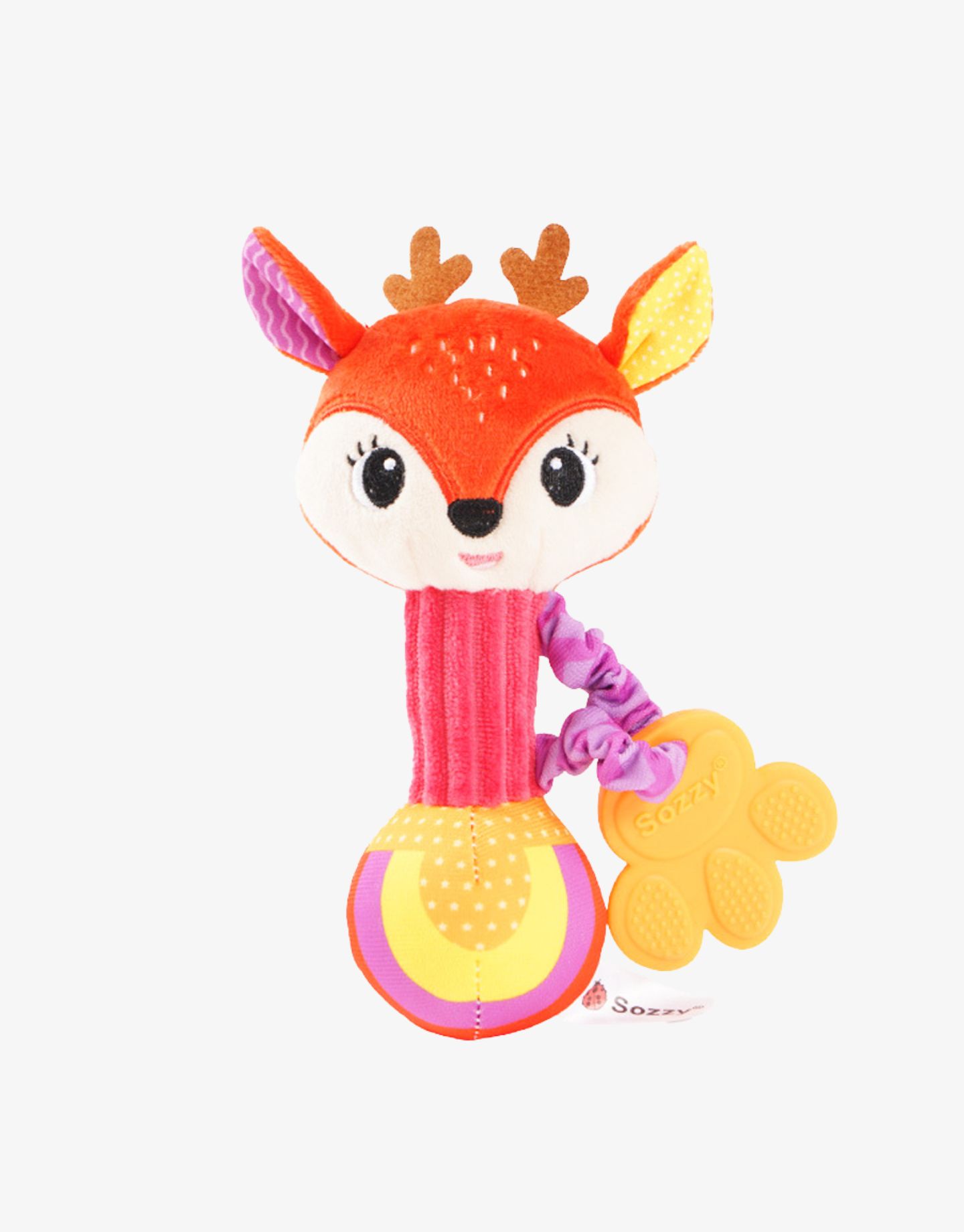 Shop the Darling Dear Baby Hand Rattle – soft, safe & sensory. Deer-shaped design with bell sounds & crinkle textures for newborn development.