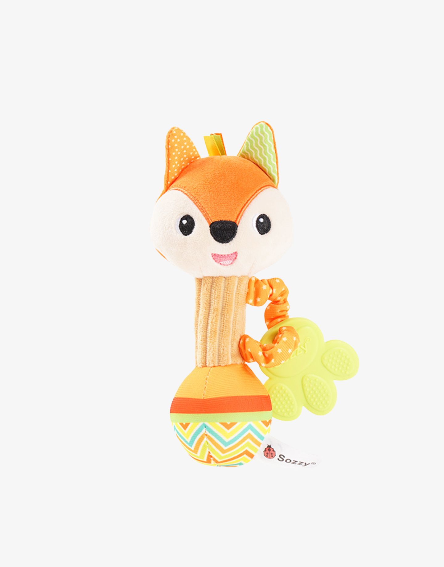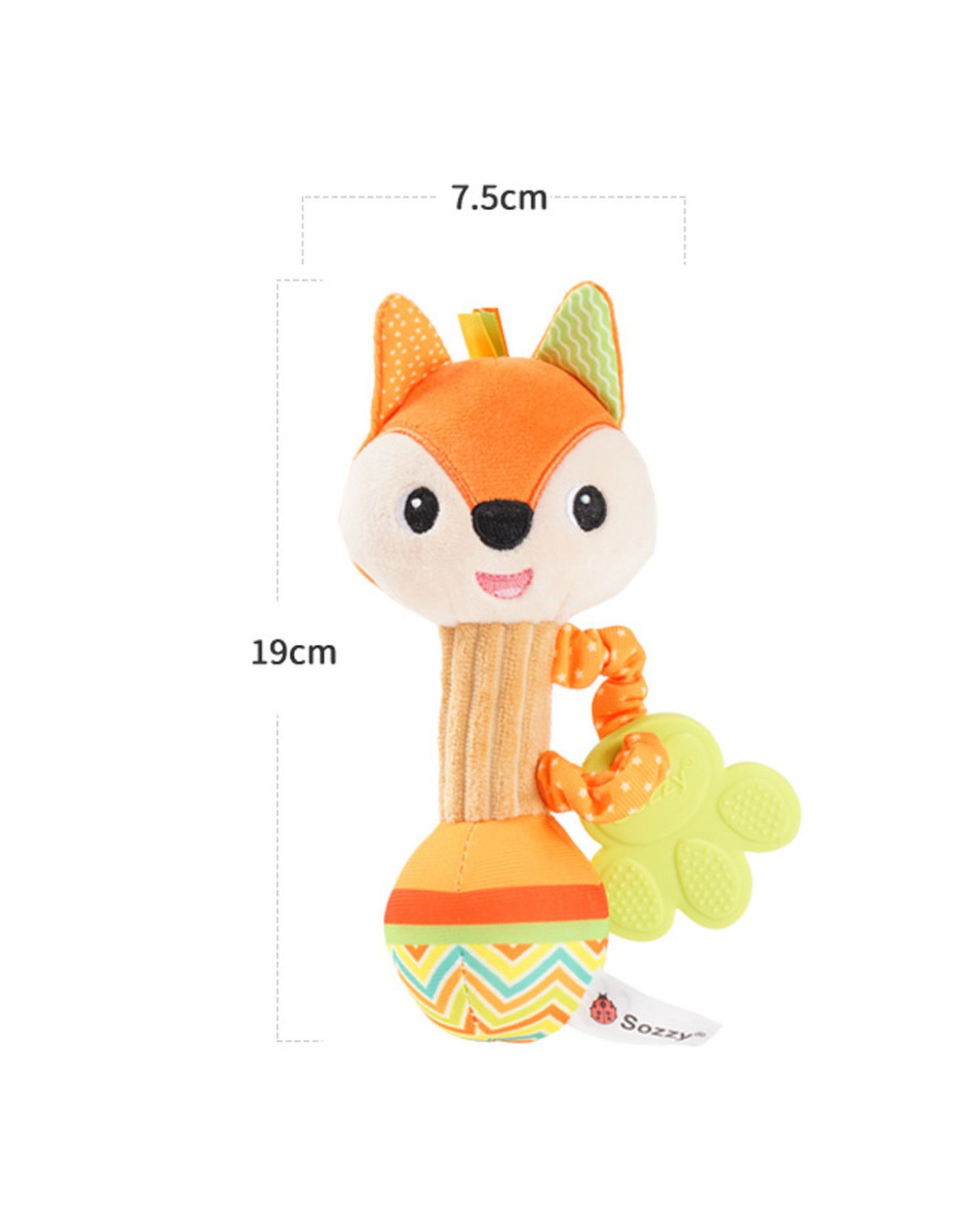 Soft to the touch and soothing to the eye, the Darling Foxy hand rattle is the perfect size for your baby’s tiny hands, with an elongated shape for easy grasping and gripping. With different textures and colours of the toy to grab more attention.