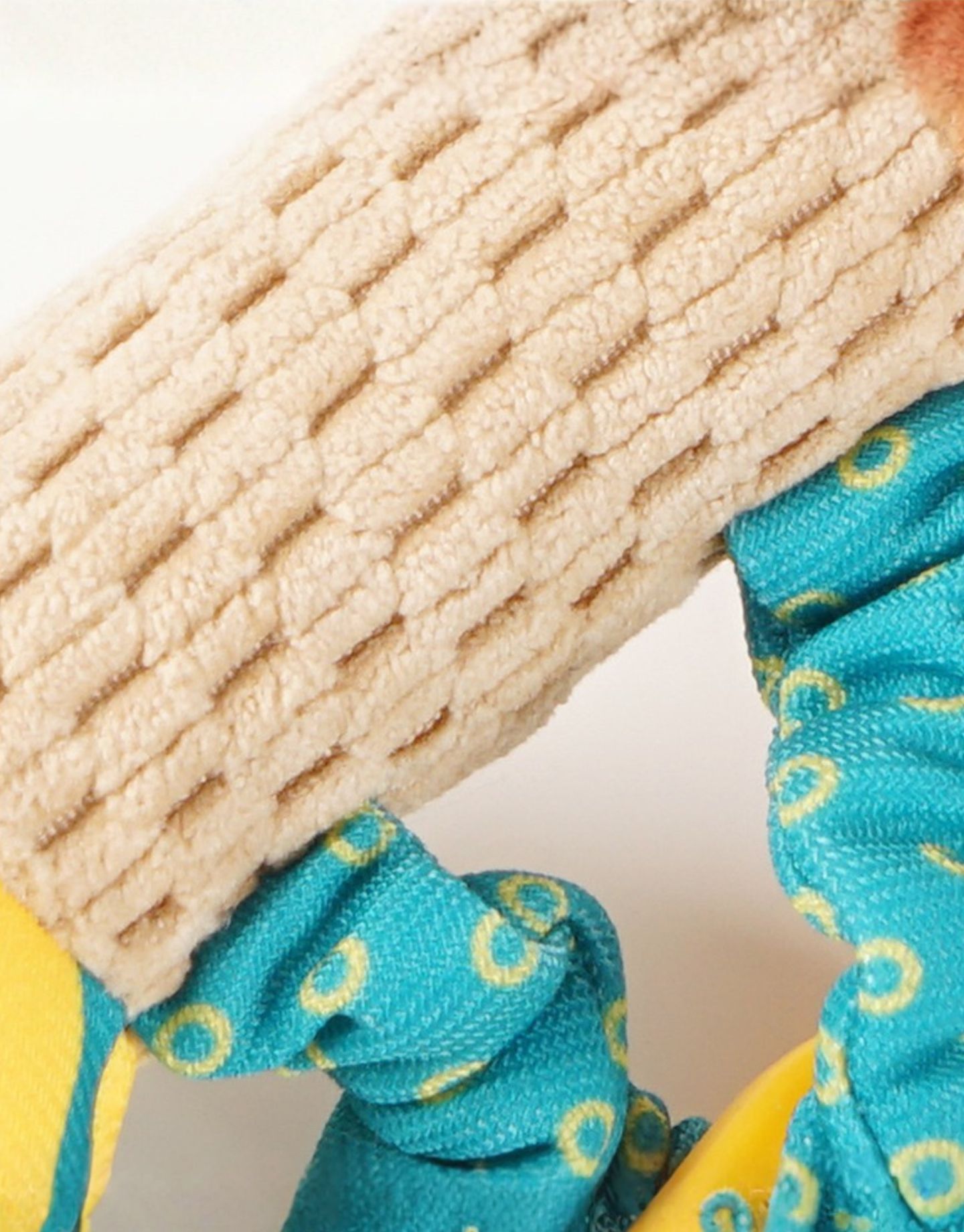 The paper crinkling effect in ears aids with babies’ sensory stimulation, while the tiny grab tabs on its head promotes grasping and pulling, which helps the little ones to develop their fine motor skills. Little belt on the side with teether for easy gripping and more activities. What’s more, all it takes is a little shake for Little Ellie to produce a delightful bell sound!