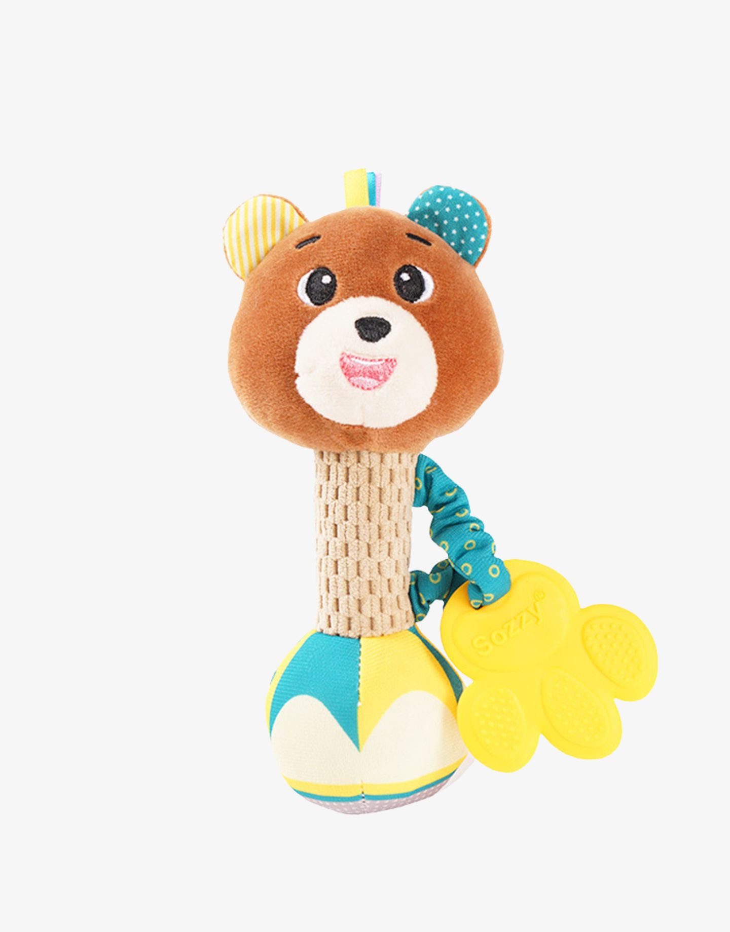 The crinkle ears provide sensory and auditory stimulation, while the tiny grab tabs on the head encourage grasping, pulling, and the development of fine motor skills. A side belt with a teether adds extra fun and provides soothing relief during teething. With just a shake, the built-in gentle bell sound delights and entertains your baby.