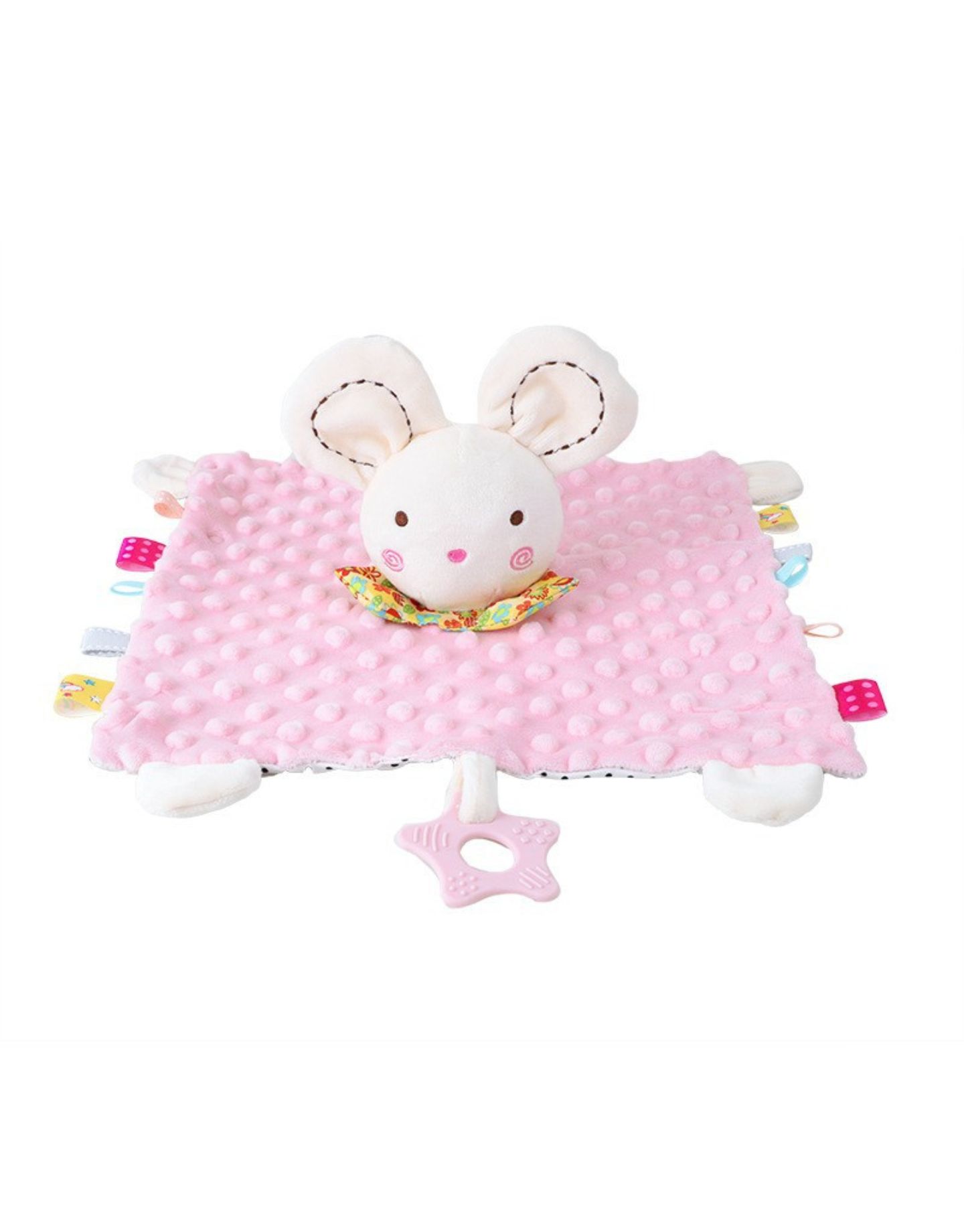 In delightful baby pink! This versatile towel is not only a soothing, saliva, and sweat absorber but also a playful companion for your little one. Adorned with a charming bunny on top, it features built-in ringing paper and a rattle to engage and entertain your baby. The cute cartoon animal shape is vivid, capturing your baby’s attention and sparking curiosity while exercising their finger grasping ability and enhancing finger flexibility. Additionally, it promotes auditory development and improves hand-eye coordination and brain development. As a bonus, this cozy towel doubles as a lovie and cuddle buddy, providing comfort and companionship to help your baby drift off to sleep peacefully.