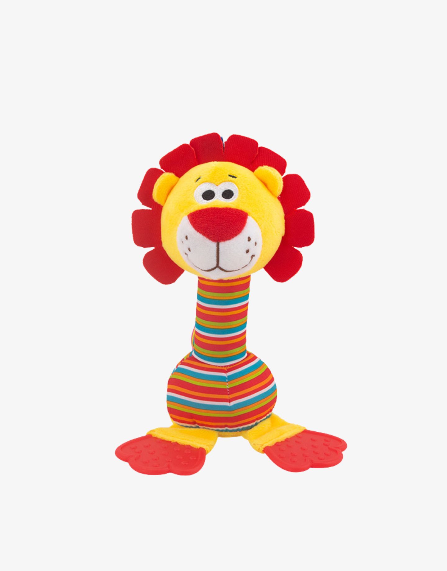 The bright colors, playful textures, and cheerful lion design keep your baby entertained, while the lightweight shape makes it easy for tiny hands to grasp. With multiple textures to explore, this toy not only helps in soothing teething discomfort but also encourages early sensory development, hand-eye coordination, and auditory stimulation.