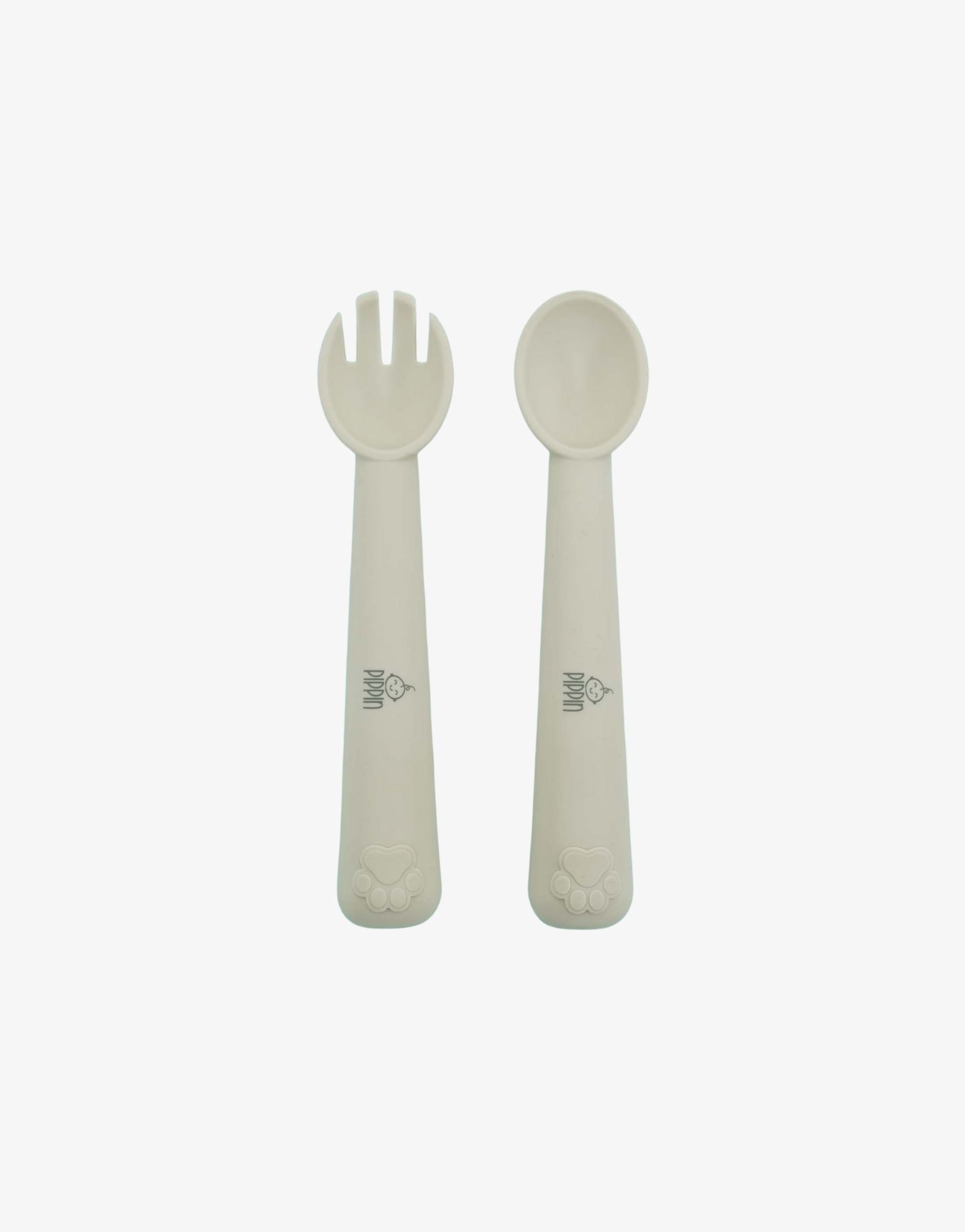 Cream Silicone Baby Cutlery Set – Fork & Spoon for Toddlers