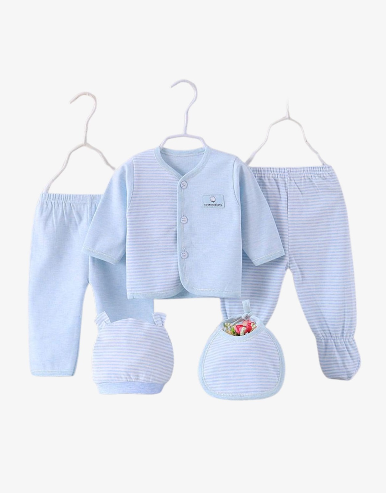 Welcome your little one with our adorable 5-piece Take Me Home Outfit Set, perfect for newborns to 6 months old. Made from 100% soft cotton, this outfit ensures ultimate comfort for your baby’s delicate skin.