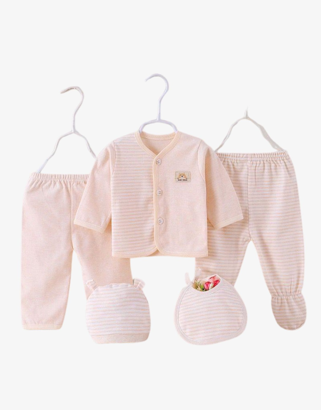 Welcome your little one with our adorable 5-piece Take Me Home Outfit Set, perfect for newborns to 6 months old. Made from 100% soft cotton, this outfit ensures ultimate comfort for your baby’s delicate skin.
